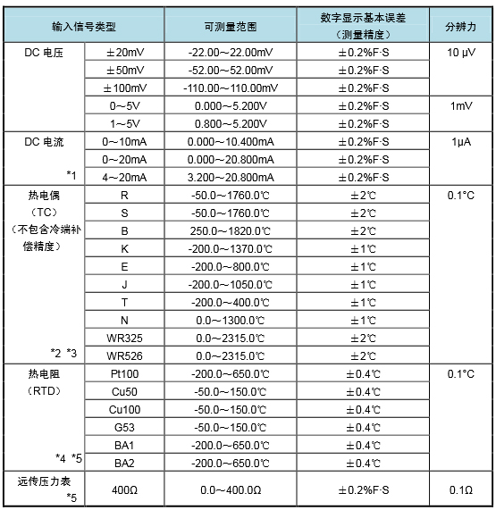 基本誤差:±0.2 %FS輸入信號選擇為B型熱電偶時,小于400°C時不保證精度。